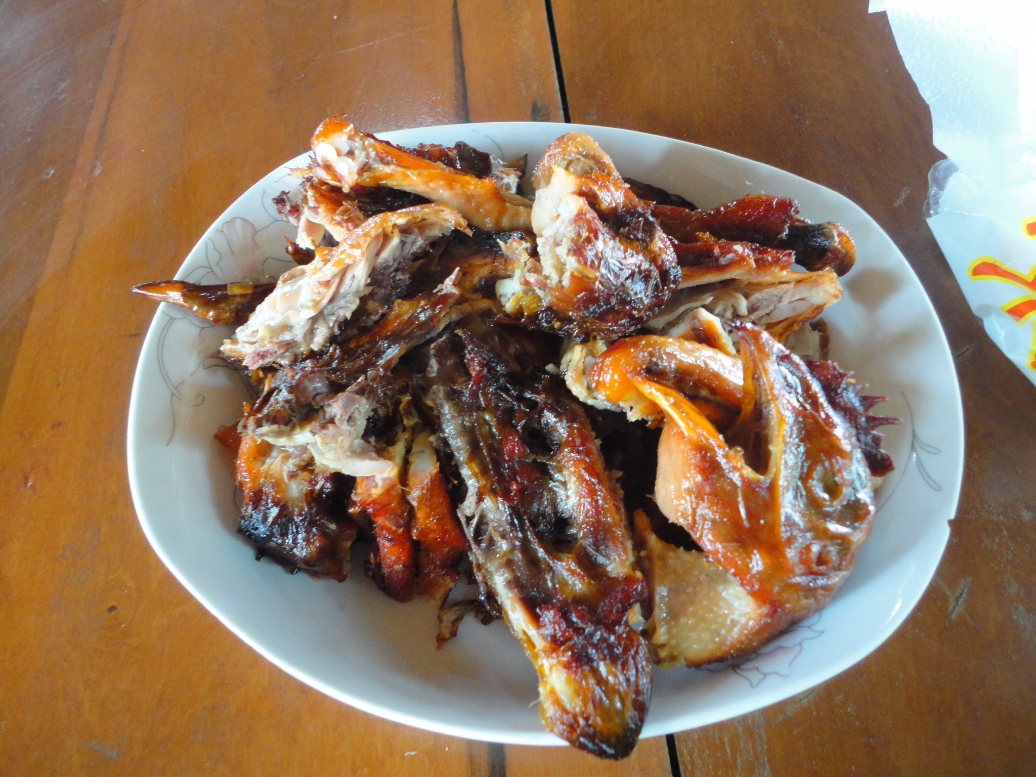 Chicken head served with the meal! This was no plump factory raised bird, this was a yard-bird, meat was as hard to find among the bones as it must have been to chase and catch that chicken.
