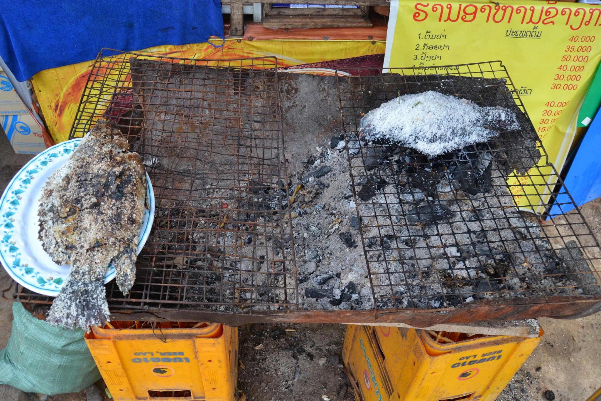 There was a large, torso-sized fish frying beside me, covered in salt. It smelled great, but way too big for one person.