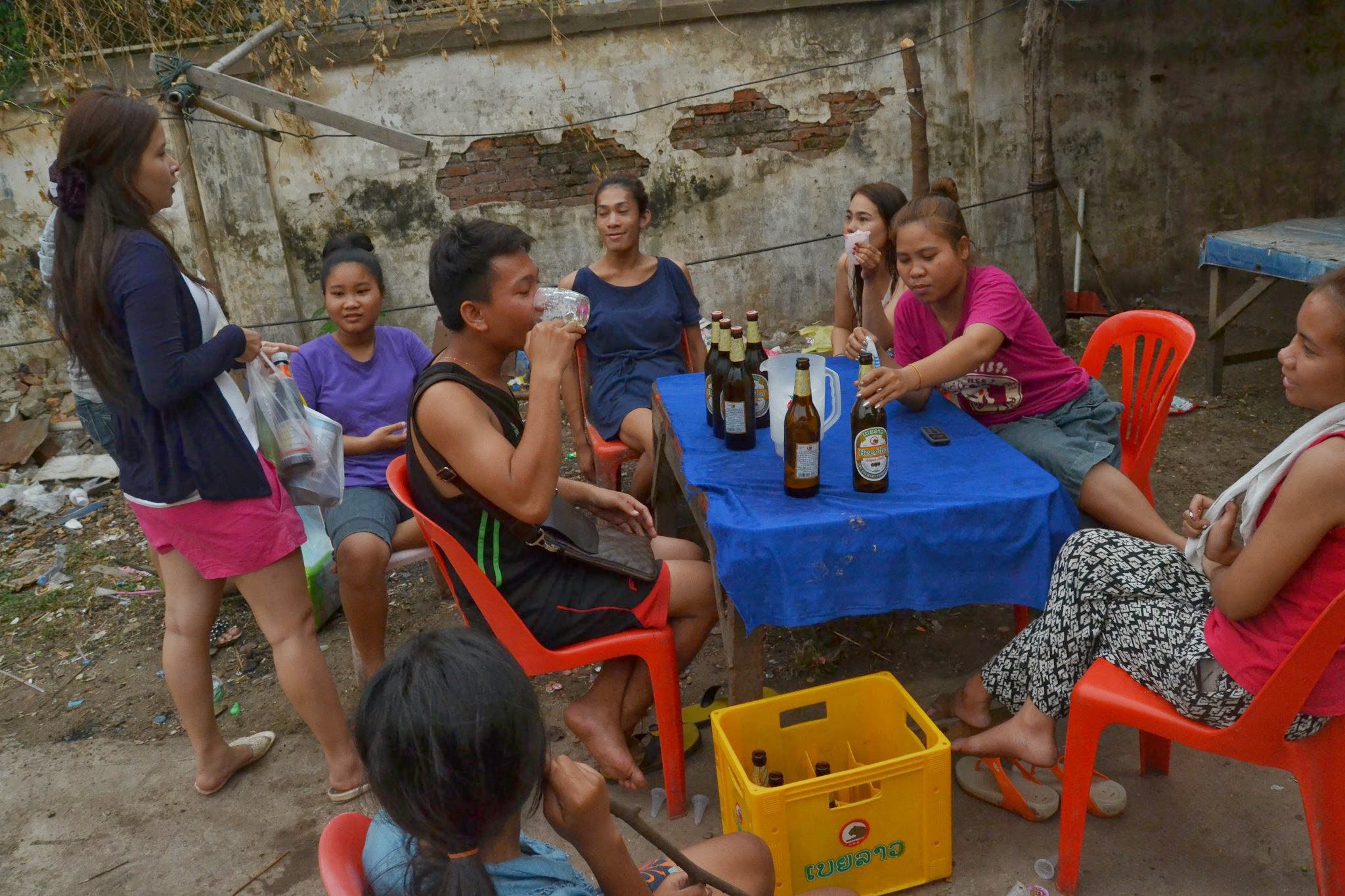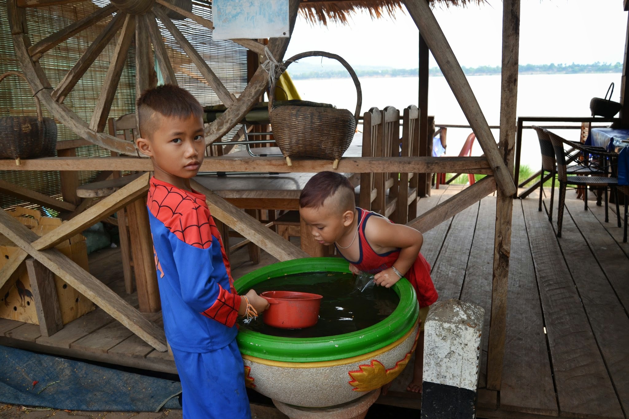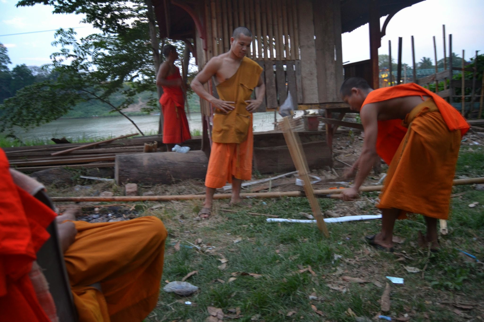 Walking farther along the river, past the grilling fish, there is a local place where we ate some spicy, delicious Lao food.