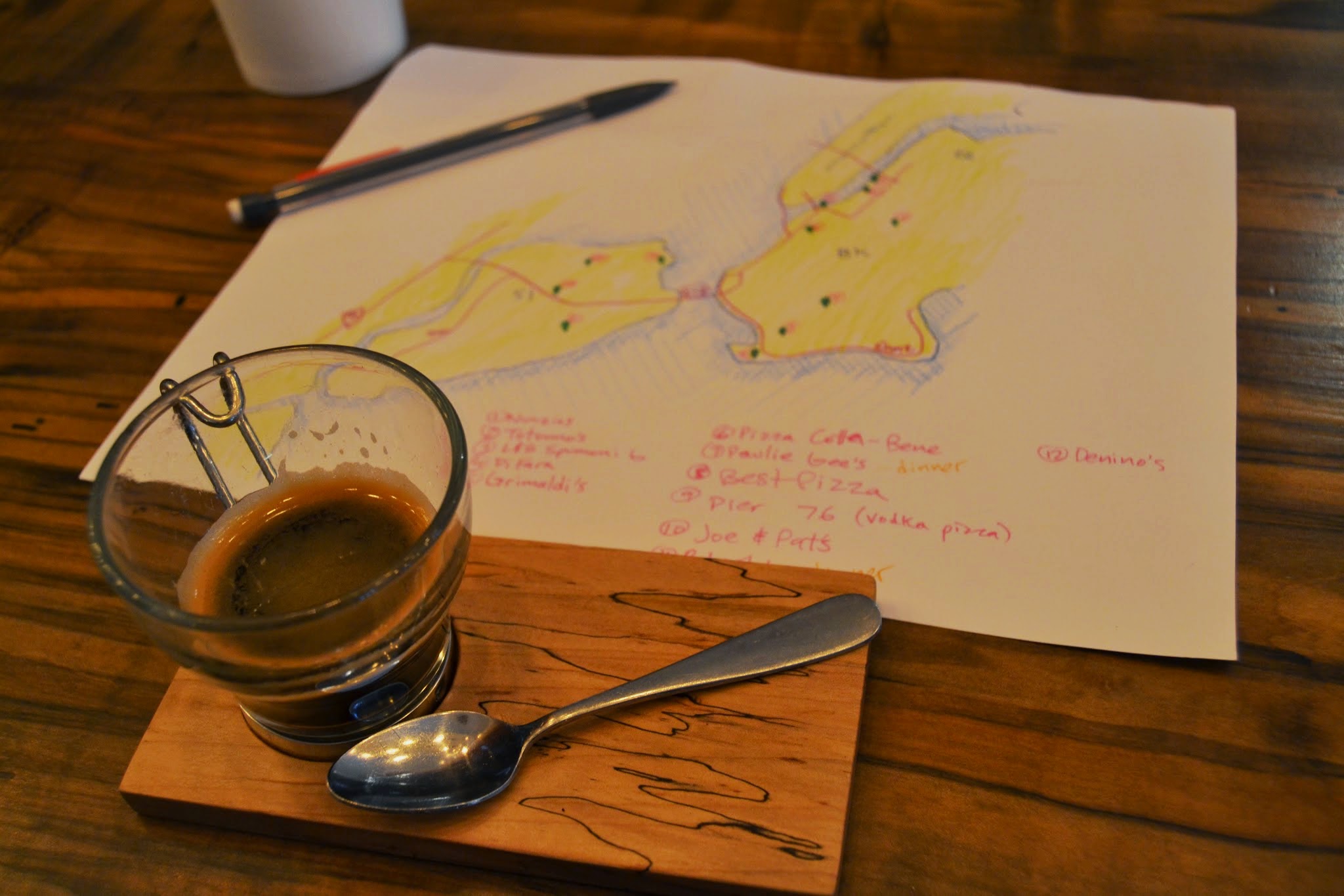 It began from a desire to understand why New York pizza was so famous. Two years ago, we drove through all five boroughs and bought at least one pie (and several random slices) from each of the 5 NYC boroughs. We found the question not to be: “Which is best?” but rather “What is exceptional about each?” These pizzerias have nearly perfected the craft. Therefore, we usually order a simple plain cheese, or in certain cases, the specialty pie of the establishment. The day begins at 10:00 in a coffee shop in South Philadelphia, where we plan our route.