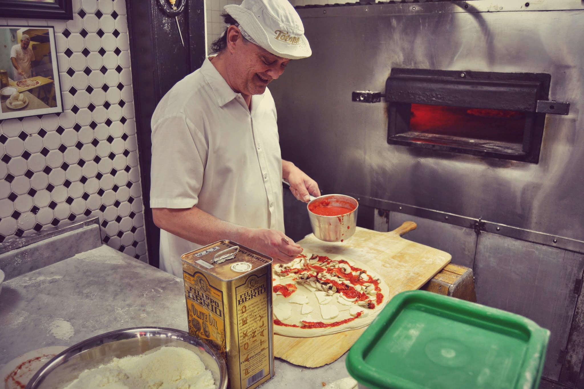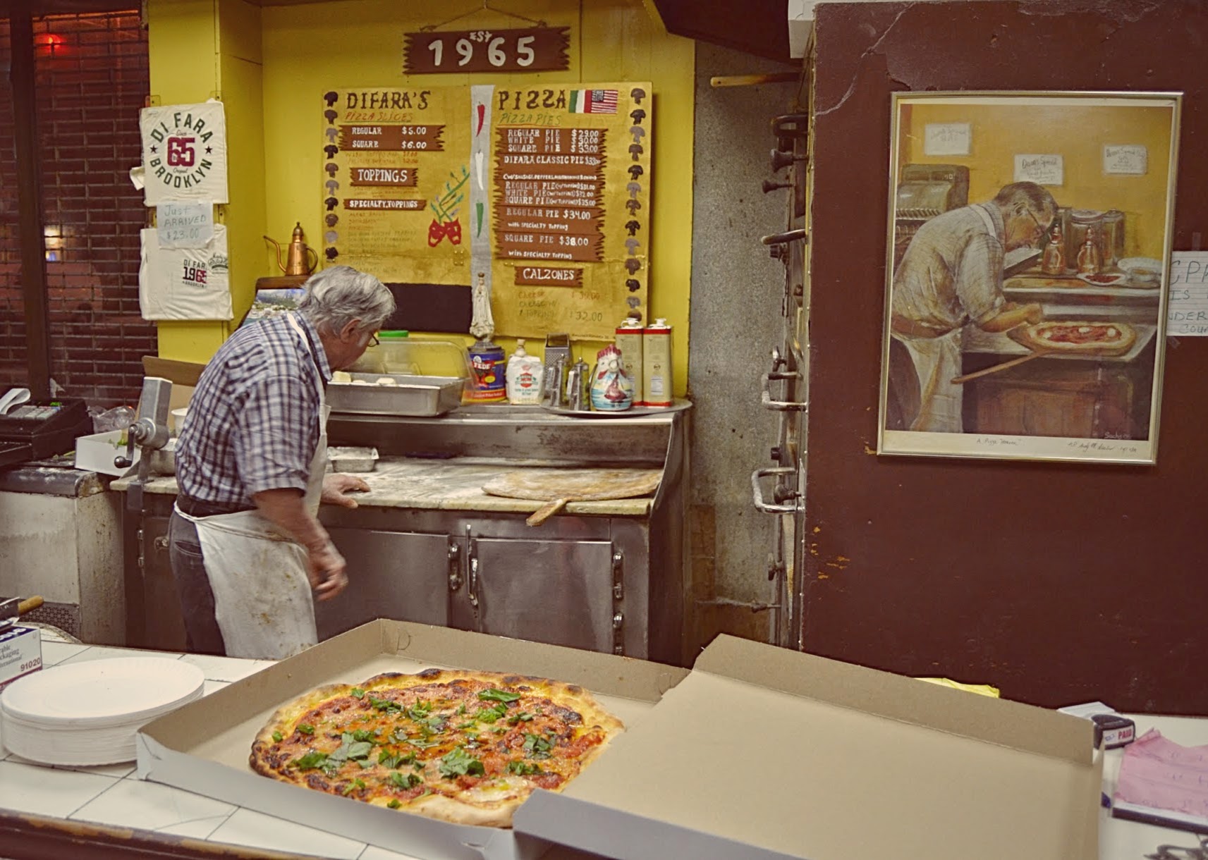 We moved into Brooklyn’s Coney Island and stopped at Totonno’s (1524 Neptune Ave.). 91 years of experience prove enough to give a quality pie. The pizzaiolo was a friendly guy who smiled as he worked. Their pizza was intricately flavored with burned crust and a pleasing appearance. This feels like ‘old school’ NYC pizza.