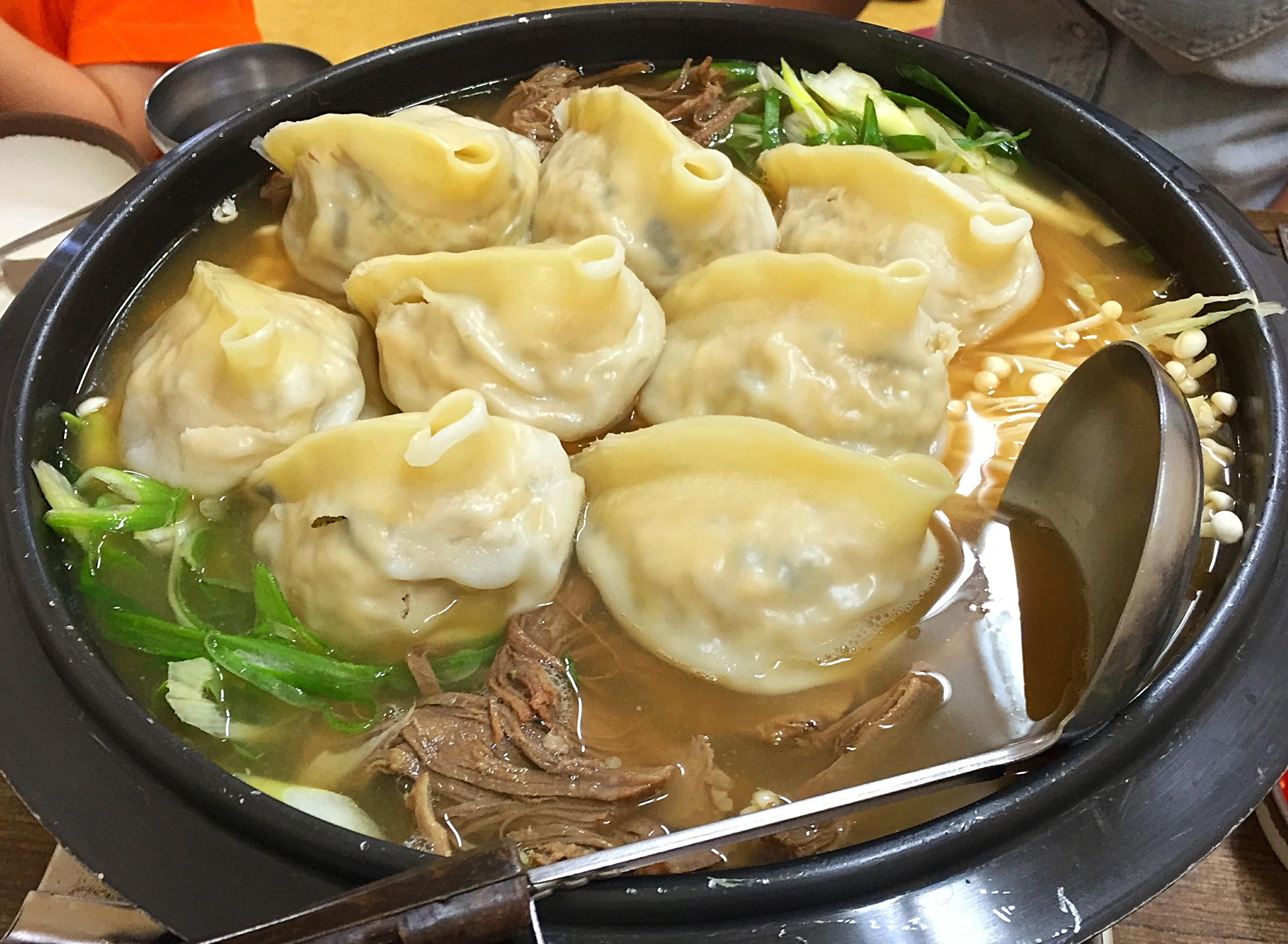 This is the always crowded 묘형만두 (mandu/dumpling) restaurant in Guri. The Korean “pizza” (파전) was delightfully fried and the mandu soup was perfect and filled with clean meat and clear noodles.
