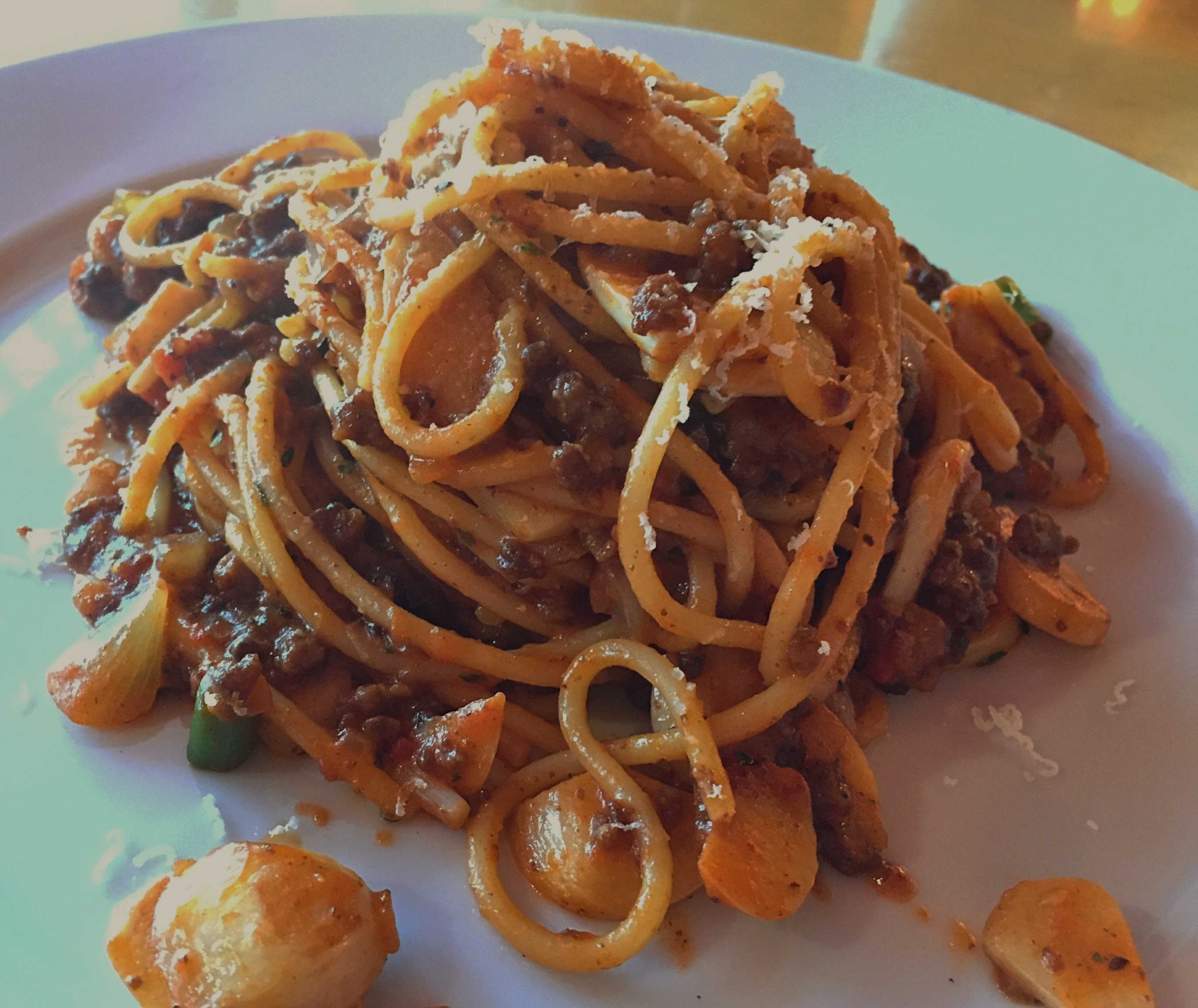 Now for the pizza. At two different restaurants, I was able to find some pretty decently priced and acceptably satisfying pies in the Neapolitan style. The pasta Bolognese was also a warm comfort on a rainy afternoon.