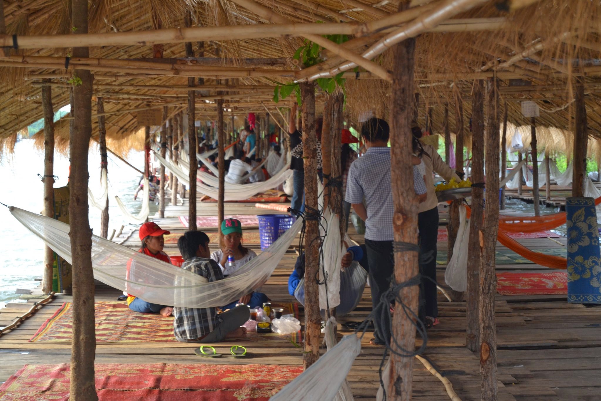 We had a small soup lunch, chugged some water, and our motorbike took us over shaky bridges, dirt roads and scattered rocks. We stopped at the Mekong rapids where a shanty town has arisen on the banks to provide a picnic area for river dwellers. Food and drinks are sold and hammocks provided for a small (2US$) fee. I gently fell asleep swaying to the hammock’s rhythm and the pulse of the river while arguing with myself about why I can’t just relax and enjoy something in the moment and stop worrying.