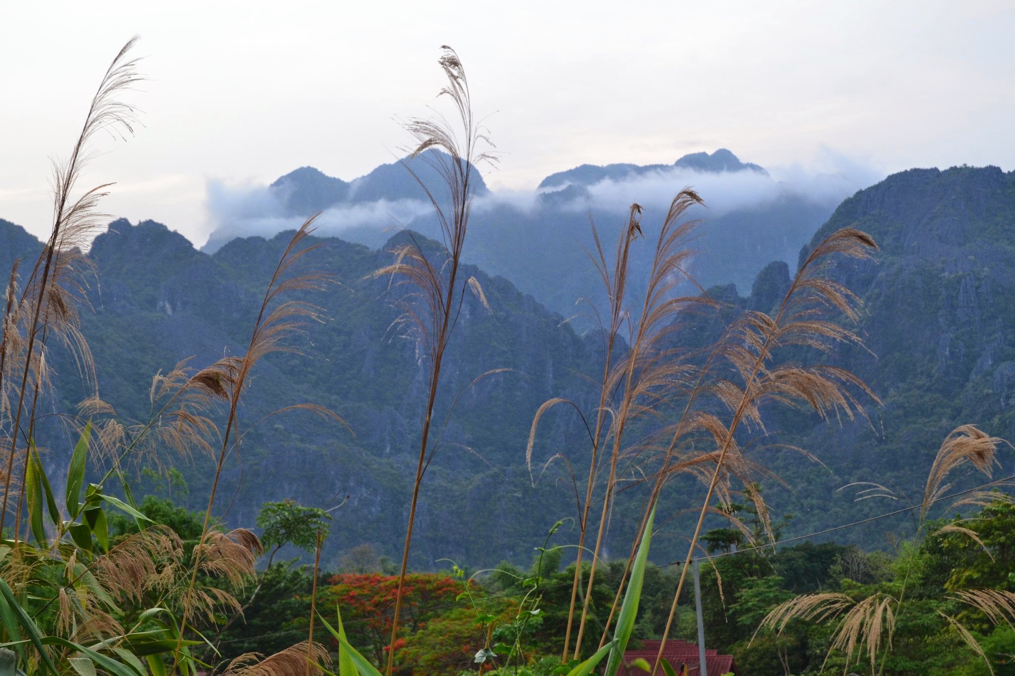 Leaving on the bus, winding through the mountains, heading toward Luang Prabang, I found these misty mountains in a quiet drizzle.