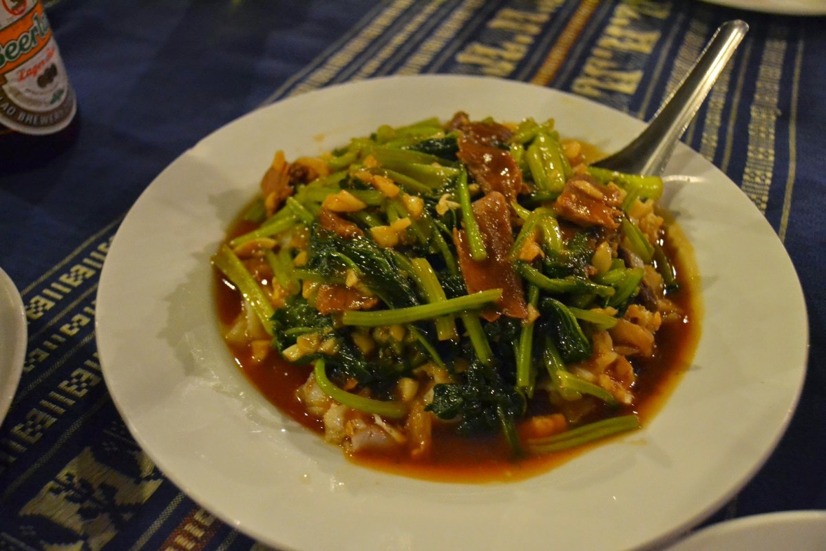 I actually have no idea what the name of this restaurant was, but it was something like that. It’s on one of the side streets. Among the myriad of bugs swarming the halogen lights, we dined on some more traditional Laos food.