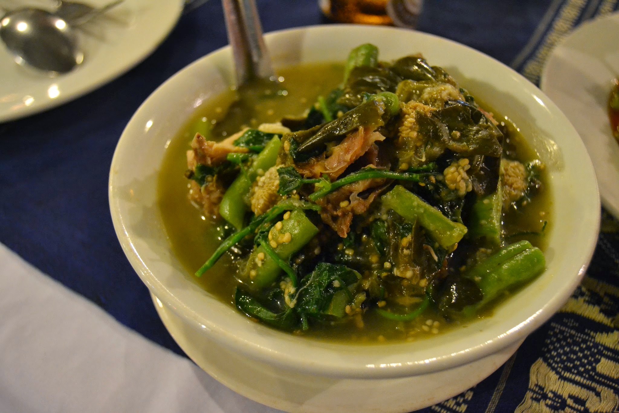 It’s a famous restaurant in town that prepares completely traditional food for reasonable prices. I stumbled accidentally, in a dazed post massage pleasure stroll, into this restaurant. They offer cooking classes and have a three page history of Laotian food at the back of the menu. I got a good vibe from the place.