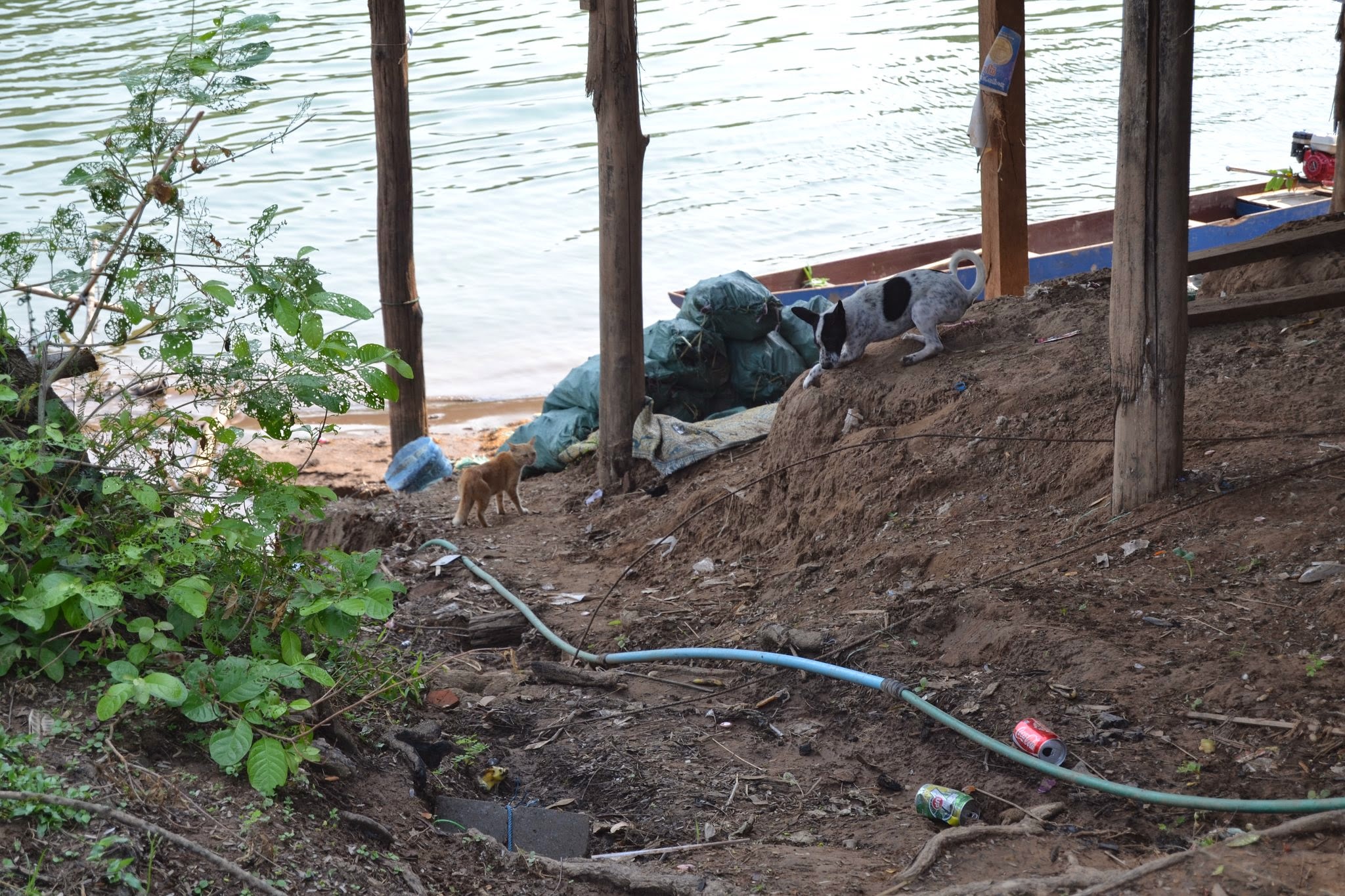 At the tip of Don Det, the loading area for passengers and motorbikes being transported to other islands, sits the small sandy area, well-polluted with bottlecaps, cig butts, and plastic bottles, generously called a beach. On this particular Tuesday, there was a funny, curious puppy who liked to steal one poor Canadian girl’s sandals and run. We all watched our free canine entertainment, soaked in sun, treaded water against the current and enjoyed the sunset among new acquaintances.